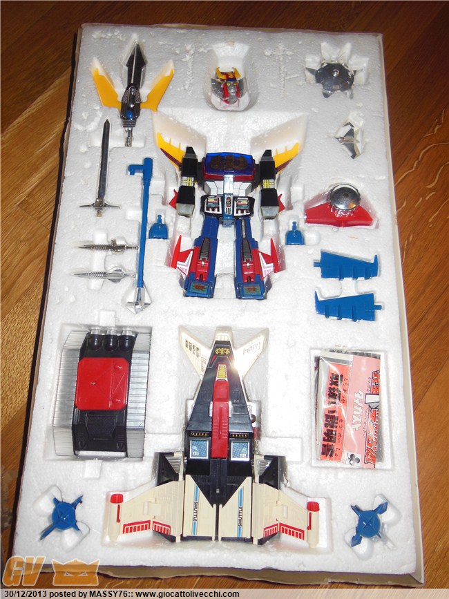 ciao Rexotico e Goku7 grazie per aver dato un vostro parere. Sicuramente siete competenti e con una certa esperienza in questo campo. ( + di me) Vorrei comuque dare alcune precisazioni; il robot non è nuovo. Avete ragione ho sbagliato a parlare nei commenti precedenti di robot perfetto. Avendoci giocato da piccolo parecchie volte non puo` di sicuro esserlo. Per me lo è perche` credo non sia facile conservarlo cosi` in tutti questi anni. Dunque credo sia normale che le cromature (parti in plastica) si siano un pochino scolorite. Non ho ben capito Goku7 che cosa sia lo schiniero... ma posso assicurarti che il robot e tutti i suoi accessori non sono ne rotti ne aggiustati. Da quel punto di vista sono in ottimo stato. Gli accessori che io sono in possesso che dalla foto non si vedono ma si trovano sotto le istruzioni sono: un fucile rosso, una spada a 3 punte rossa e due missili rossi. Non ricordo se nella confezione originale ce ne fossero altri. Ma credo di no. Le istruzioni sono due fogli plastificati un po` sgualciti (ma non strappati) perche` non ripiegati nella giusta maniera. La scatola non è sicuramente in ottimo stato in quanto è aggiustata con lo scotch nei spigoli. Confermo la vetrina non c`è.