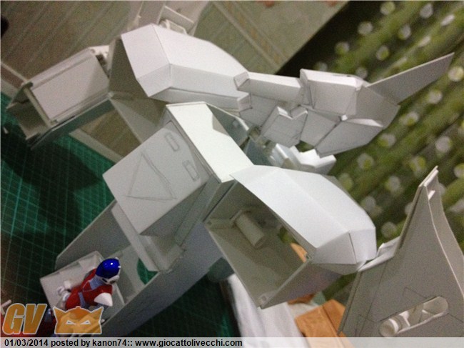 Ahhh ma allora siete dei bongustai eh? Beh io ho visto le recensioni su youtube della scala 1/48 e sono micidiali. Dettagliatissime e con le luci sulle ali. Uno spettacolo. Per non parlare poi dei moduli spaziali di corazzatura. Ho sbavato per molto molto tempo. Io sono fermo alle 1/55 vintage, ma anche parlando di Valkyrie mi sono procurato un paio di Valkyrie jum, bo della matchbox, ovvero quelle non trasformabili nate per i personaggi snodabili da 10 cm sempre Bandai/matchbox. Ho sempre pensato che ci fosse qualcosa di sospetto in quei toys perche` alcune forme delle plastiche sembravano promettere una sorta di trasformazione. Ne ho smontata totalmente una, un macello esagerato, e quindi ho scoperto che i miei sospetti erano fondati. In realtà chi progettò quella valkyria voleva renderla trasformabile ma poi il progetto si vede che era troppo costoso e hanno optato per qualcosa di piu` giocattoloso e con stampi a blocco intero che impedivano la trasformazione. Pensate che sotto le braccia esistono le cerniere che permettevano la rotazione della braccia ma che sono inutilizzabili perche` le braccia sono un corpo unico. Anche qui il mio progetto e` stampare ogni singolo pezzo della valkyria e renderla trasformabile. Stiamo parlando di quasi 40 cm di valkyria in piedi. Un mini jumbo praticamente. Certo c`e` molto lavoro ma ho gia` studiato ogni cosa e avendo gli stampi potrei fare anche le valkyrie rossa e blu per i personaggi della matchbox Max e Miryia Sterling che attualmente sono sprovvisti di mezzo, oltretutto trasformabile. Sarebbero dei bestioni giocattolosi vintage niente male. Per farvi capire quanto è grossa vi posto alcune foto