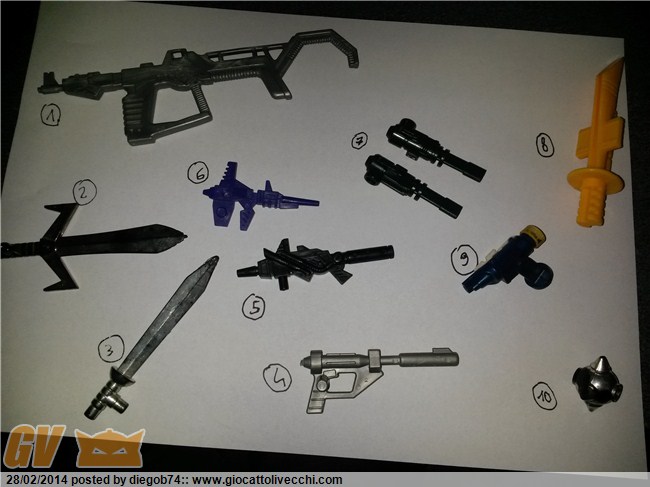 n.6 fucile Blitzwing g1 (triplex2) 5 Euro (secondo me) n.5 fucile Sludge g1 6 Euro (secondo me) n.7 armi Vortex g1 puoi chiedere anche 8-9 euro per la coppia (sempre secondo me)