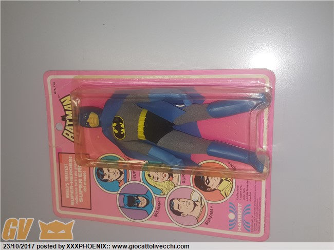 Ecco la mia mancolista MEGO/HARBERT aggiornata: 8`` SUPERMAN 1979 blister italiano Harbert 12`` BATMAN box USA con adesivo azzurro Harbert