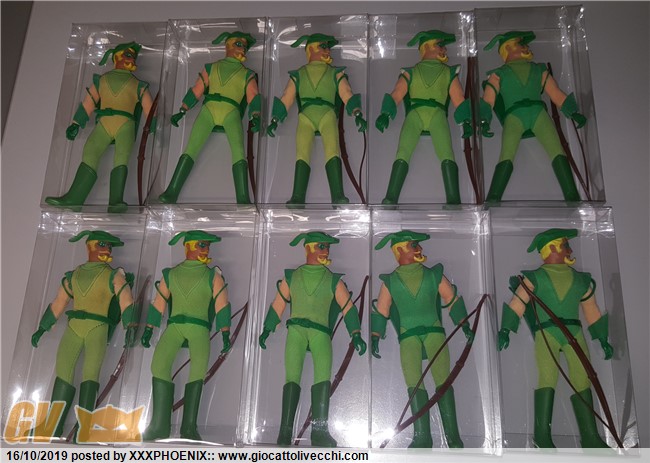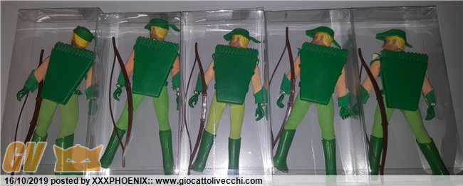 Quanto è difficile trovarlo con l`arco e la faretra intatti... Gli operai MEGO si devono essere divertiti parecchio visto che abbinavano quasi a caso i diversi tessuti verdi e giallognoli del costume...forse anche per finire fino all`ultimo cm di poliestere!