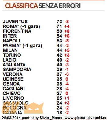 andiamo avanti, lasciamo ai cercatori di scude queste classifiche farlocche p.s. a napoli mi sa che perdiamo 1 a 0 domenica sera, siamo scarichi e rivolti alla coppa