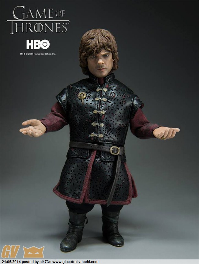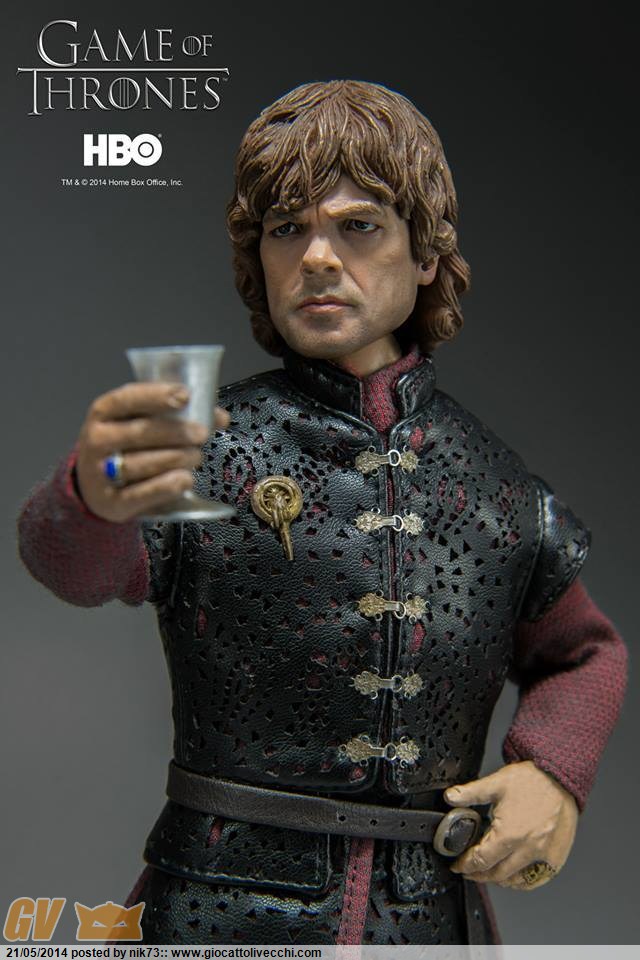 Threezero: 1/6 Action Figure Game of Thrones - Tyrion Lannister fine 2014 Figure details: 22cm (8.7?) tall and articulated body; Realistic headsculpt; Two pairs of exchangeable hands with rings; Custom made clothes: belt, trousers, camisole, boots and other clothes elements shown on photos Figure comes with the following accessories: goblet and book.