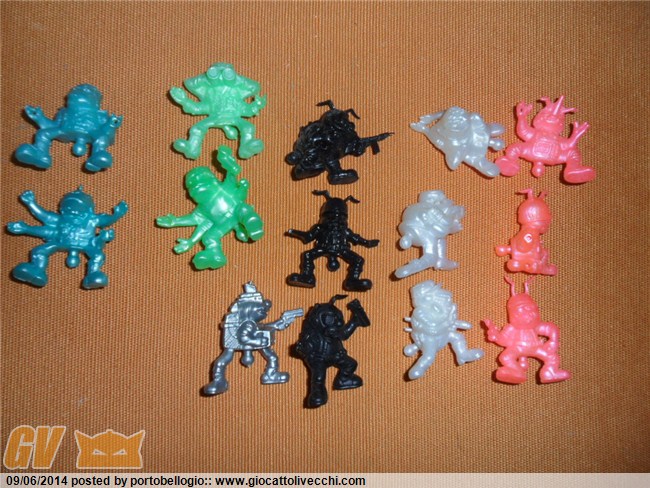 ciao, questi sono combattini, valgono poco perchè sono incompleti, mancano della parte terminale in gomma colorata e delle armi in plastica che caratterizzavano ogni insetto-soldato, per la valutazione sono molto meno richiesti degli exogini, se completi vanno dai 0, 50 a 1 euro al pezzo.....aspetta altri pareri perchè non so se ci sono pezzi più rari ma non credo...