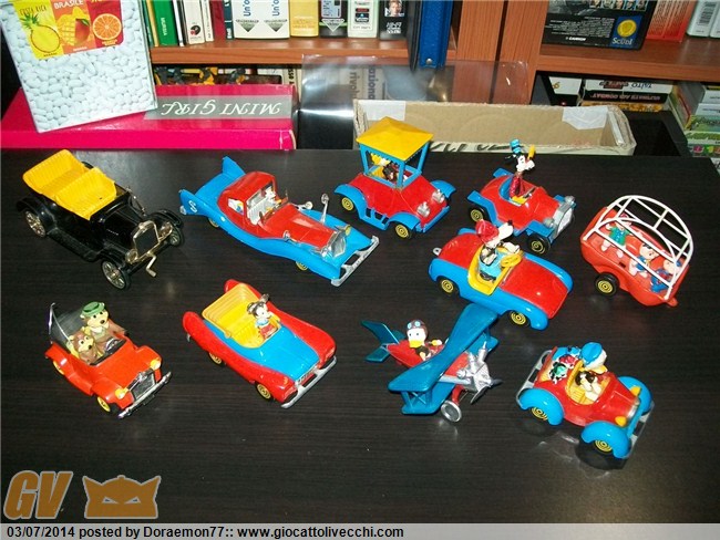 Sapete darmi una valutazione? Hanno tutti o quasi una qualche mancanza o Difetto, per esempio il veicolo di nonna papera ha il pezzo dove poggia il tettuccio incollato al veicolo; alcuni personaggi sono incollati al proprio veicolo, anche se tendono a staccarsi comunque. le vernici sono in ottime condizioni, ancora brillanti oltre ai veicoli disney, c`è anche l`auto di Yogy e booboo dellla mabetoys e L`auto di Stanlio & Olio senza i personaggi però