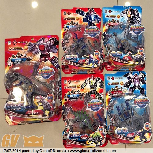 un combiner "dinosauresco" della TFC o di altro gruppo, ora non ricordo .. .. .. mai uscito... ma taroccato in ben 2 misure diverse, e venduto su noti siti di tarocchi, forse con qualche colore sfalsato.