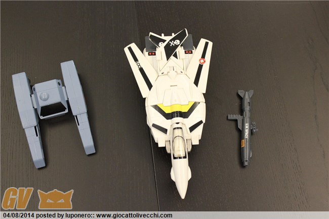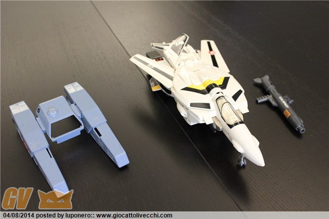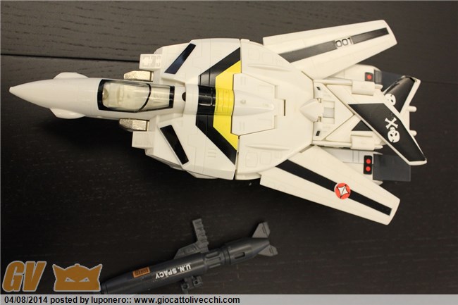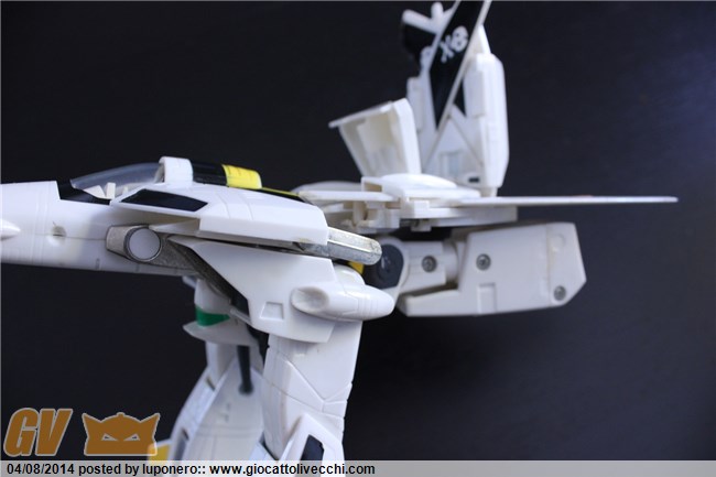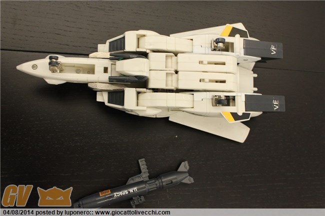 Ciao è una VF-1S S Super della Bandai prodotta nel 1990 ovviamente della serie Macross. Tra tutte le Valkyrie è la meno quotata essendo la più recente, la più facile da trovare e quella di qualità produttiva peggiore. Normalmente MIB arriva sui 150/180 $ (in japan anche meno) ma a questa manca sia la clip del bazooka sia i missili che lo shell del cockpit oltre ad avere gli adesivi applicati ed essere senza scatola. Non so se sia una made in japan o una di importazione devi vedere tu se ha i marchi sulla parte interna della schiena. Credo tu abbia abbastanza info x decidere cosa farne.