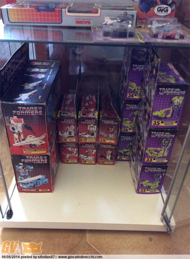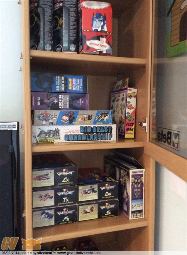 complimenti per la collezione!!! uno spettacolo tutti quei Transformers in scatola gig! molto rari!! veramente una bellissima raccolta!! molto particolari anche quel set dei due Samurai e il robot in plastica 3 in 1. mi piacciono un casino le collezioni dove ci sono pezzi particolari. riguardo al robot 3 in 1 ricordo che all`epoca si potevano trovare anche nelle edicole dove andavo spesso alla domenica mattina quando i negozi di giocattoli erano chiusi. sono un particolare tipo di trasformabili che oggi si portano dietro tutta l`atmosfera degli anni 80, ad iniziare dai colori e per finire con il design in generale. credo che in futuro questo tipo di giocattoli potrebbero diventare ricercatissimi. mi piacciono molto. bella anche tutta l`esposizione sempre molto da negozio anni 80, e davvero bella quella dei samurai. molto bello anche quel set dei Turtles con i mattoncini disegnati in puro stile metropolitano. e poi il Diaclone, beh, mitico!! mi è piaciuta molto.