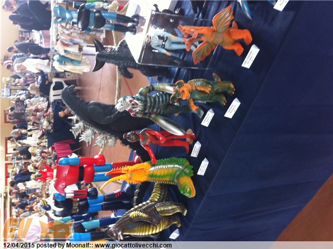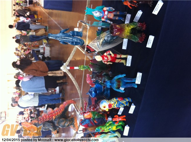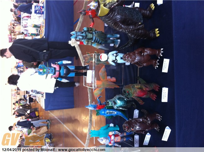 sicuramente qualche altro partecipante sara` in grado di postare foto migliori...GV c`era....ho potuto chiedre info in incognito a Morte che era presente col suo bel banchetto con tanti robottini etc., e anche MisterMotu coi suoi 2 metri di banco esponeva tante belle cosine....ma di GV ne ho visti tanti altri e......i prezzi fortunatamente onesti....è la prima volta che vi partecipo ma posso consigliare di farci un salto perche` tra loose ed in scatola si trovan tanti bei robot!!!Con budjet relativamente bassi ci si porta a casa un XBomber DX loose ma completo meno di 70 euro od un Gordian japan perfetto in scatola a 200.....ma pezzi interessanti da portar a casa ce ne son veramente tanti.....ricambi per i micronauti?.... a iosaaaaa.......bellissimi i mostri Jap della mostra al centro dell`esposizione assieme ai Jumbo che ben conosciamo....e belli anche i popy, dx e st esposti nelle teche che pero` non ho fotografato....c`eran quasi tutti?!?! ovviamente non c`erano solo Robot.....tantissimi giocattoli d`ogni genere...dalle barbie, motu, bambole d`ogni tipologia e soldatini e macchinine a no finire......una bella giornatina nel magnifico mondo dei giochi....!Domenica 10 Maggio si ripetera` a Brescia su organizzazione della stessa associazione italiana del giocattolo d`epoca co entrata dalle 10 alle 17 al:PalaBanco di Brescia-via della Ziliola, 91...per info Sig.Cavazzoni-cell.3498669571.......