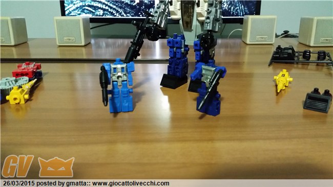 E` Takara: dopo 30 anni la plastica regge sforzi di ogni tipo e il giocattolo sembra essere uscito dalla fabbrica l`altro ieri. Ad una prima occhiata, vedendo i pezzetti negli sprue come fossero dei model kit, si può pensare erroneamente a qualcosa di leggero e non troppo resistente, ma non è così. Il busto dei robottini é di metallo e la plastica è di quella tosta.