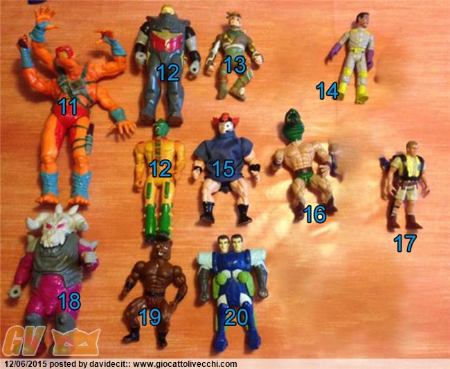 11 - Warriarr dalla serie Photon della LJN 12 - Transformers Pretenders Waverider (perlomeno il guscio esterno, non completo) 12 (quello di sotto) - Tanec 3 della serie Space Attack della Toy Island 13 - Rat King dalle Teenage Mutant Ninja Turtles originali, non completo 14 - Winston Zeddmore dai Real Ghostbusters della Kenner, seconda serie Fright Feature 15 - Satana dei Combo Warriors della Sungold, non completo e con una maglietta di troppo 17 - Robert Muldoon di Jurassic Park (Kenner) incompleto 18 - Transformers Pretenders Skullgrin (perlomeno il guscio esterno, non completo) 20 - Transformers Pretenders Doubleheader (perlomeno il guscio esterno, non completo)