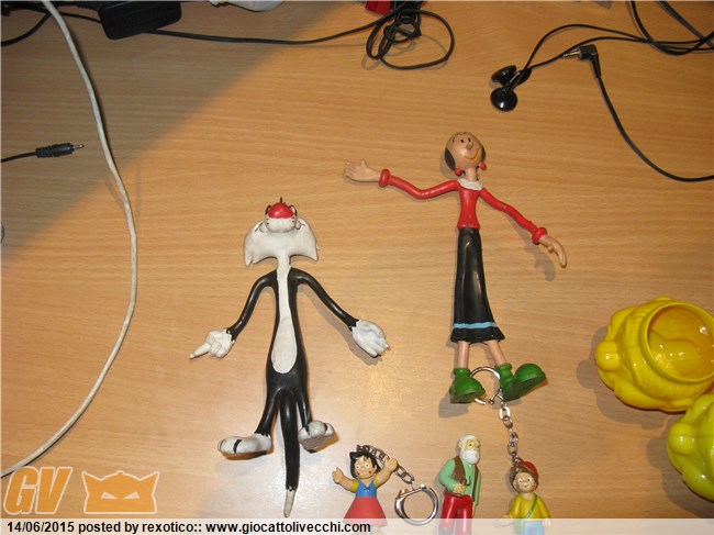 qualcuno mi può dare una valutazione? flexy vintage olivia del 1978 flexy vintage gatto silvestro 1979 heidi, peter (portachiavi) e nonno vintage zuiyo puffo a retrocarica galoob peyo 1982 (meccanismo di movimento non funzionante) 2 pipe (gelato?), 1 con coperchio