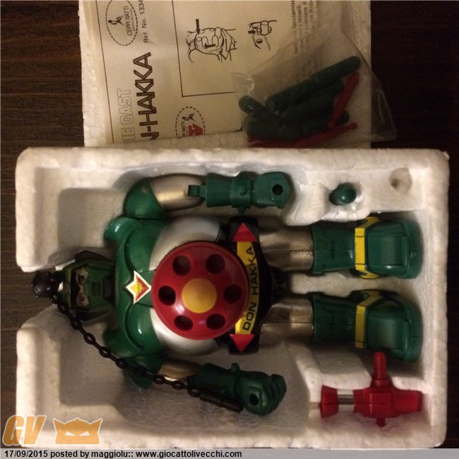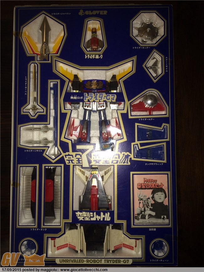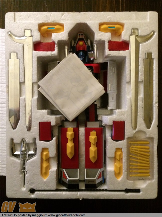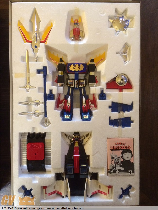 Grazie len mancano ancora molti pezzi importanti piano piano speriamo di aggiungerli Grazie helligen sai che non so se è un adesivo o una stampa in rilievo di sicuro e tutto originale quindi potete vedere le scatole con le dotazioni di serie come se fossero appena usciti dalla fabbrica. È una certezza li ho tenuti sempre io ero un collezionista già da bambino l`unico mischio e è quello che mi hai fatto notare e non me ne sono accorto facendo le foto ho per sbaglio inserito le lancie rosse del Daltanious nella scatola del Daitarn 3