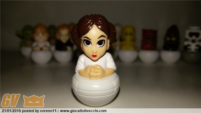 Ma cosa ti danno? sono pupazzetti di plastica dei personaggi di Star Wars, alti quasi 4 cm con una base autobilanciante tipo "fagiolo magico", con 1, 99€ ti danno una confezione a forma di millenium falcon per riporli.