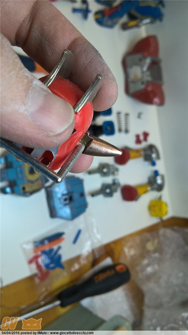 Come si può vedere dalla foto i problemi sono molteplici dalle gambe NERE O_____O" del Trangu all cosce del Legga sverniciate. Partiamo dalle spalline del Trangu che fanno paura da quanto sono opache, si procede con lo smontaggio del pezzo, ci sono poche viti, ma sono importanti perchè permettono di togliere le braccia e le gambe in futuro. Si prende un pasta abrasiva e con l`apposita spugna si interviene energicamente sul pezzo fino a renderlo quasi lucido.......in realtà la lucentezza la raggiunge solo dopo averlo sdrusciato bene su un panno di lana........