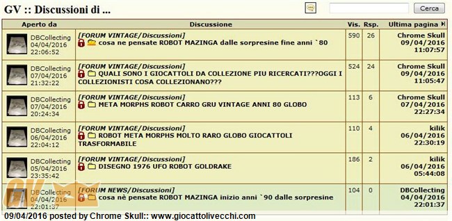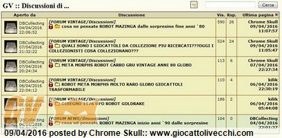 IMPORTANTE: giocattolivecchi.com non è responsabile per il contenuto dei messaggi presenti nei forum e degli annunci presenti sul mercatino. I messaggi dei forum rappresentano l'espressione del pensiero degli autori ed il mercatino è uno spazio offerto ai privati che possono vendere il loro vecchi giocattoli.