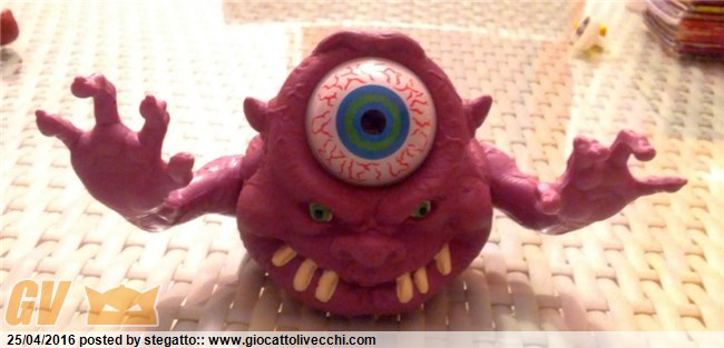 con quest`occhio enorme che si può anche sfilare ed è collegato ad una cordicella.