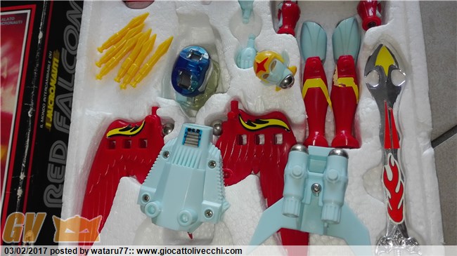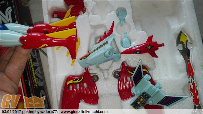 Red falcon prima serie , credo giocato nulla o poco. Mai visto di persona gli adesivi così o l`assenza di smussature alle punte delle plastiche. Privo anche del classico difetto dell`incrinatura della plastica celeste madonna . La scatola niente di eccezionale , usurata ma flap presente, polistirolo bianco e sano.