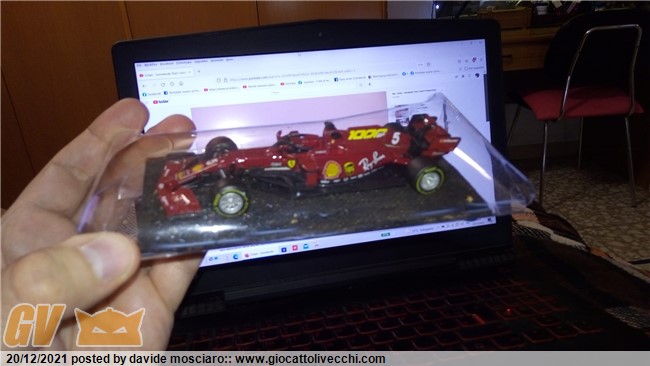 un nuovo arrivo..la ferrari del 2020 di Vettel, Bburago..la teca è opera di mio fratello...il piedistallo è opera mia..
