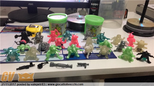 i barattoli con 4 kombattini completi dentro , 15 euro . i kombattini colorati 2 euro l`uno massimo , 3-4 euro quelli trasparenti sempre se completi di armi. In lotto il prezzo cala.