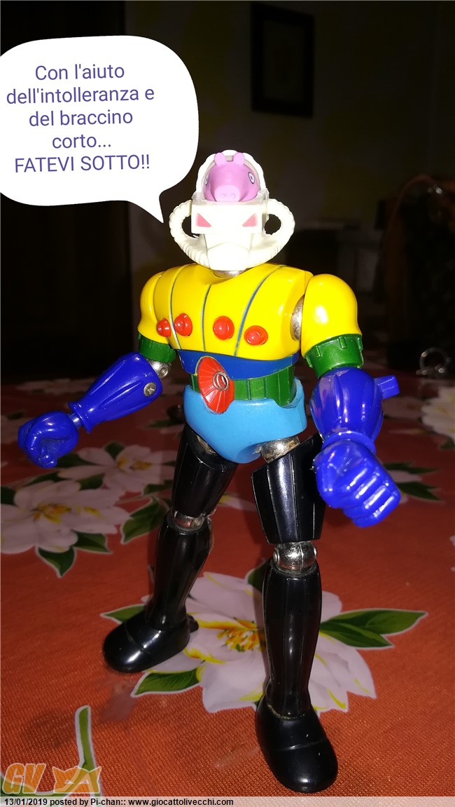 Il tizio della foto sembra Mulder dopo l`ennesima inc....dall`uomo che fuma Il Peppa-force-jeeg é da morire Comunque a mio avviso è tanta la fame di personaggi inediti o riedizioni che molti sono contenti a prescindere dai difetti! Se x esempio facessero un playset di Babil Junior con la torre di Babele apribile ecc., lo prenderei anche se approssimato, idem una Mobidick 5...Non esisteva, l`hanno fatta, DEVO averla...tutto qui.