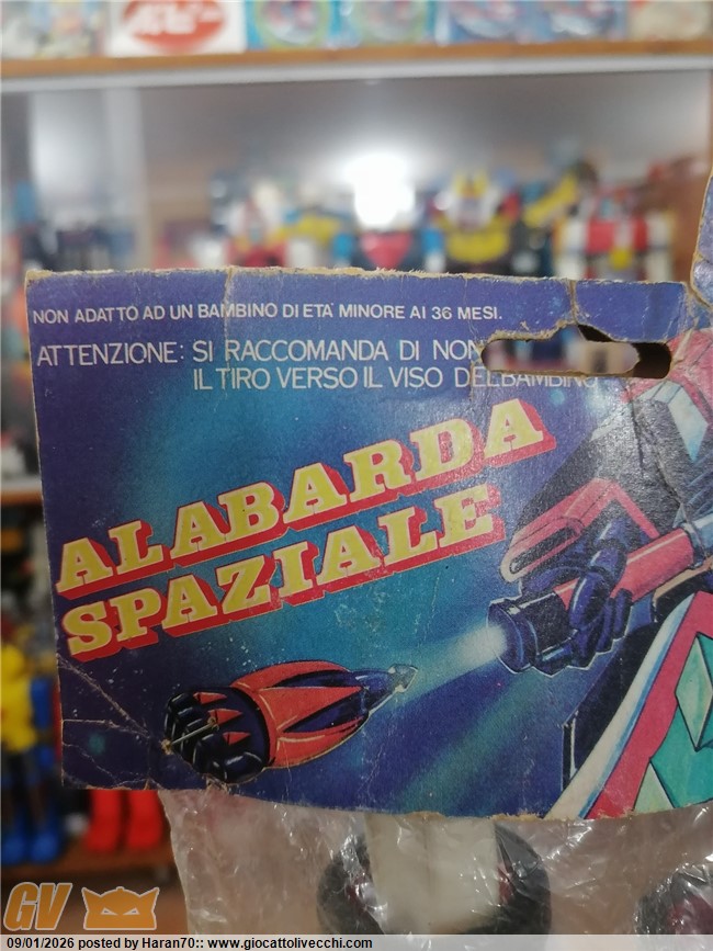 Buon anno nuovo collezionisti ed appassionati accumulatori di balocchi... iniziamo l`anno con una chicca molto rara targata Ceppi Ratti... L`Alabarda Spaziale di Goldrake, ma come spesso succede nei giocattoli italici, sulla fettuccia di cartone compare Daimos... (che veniva soprannominato il figlio di Goldrake, quando in realtà le due serie non alcun legame in comune)
