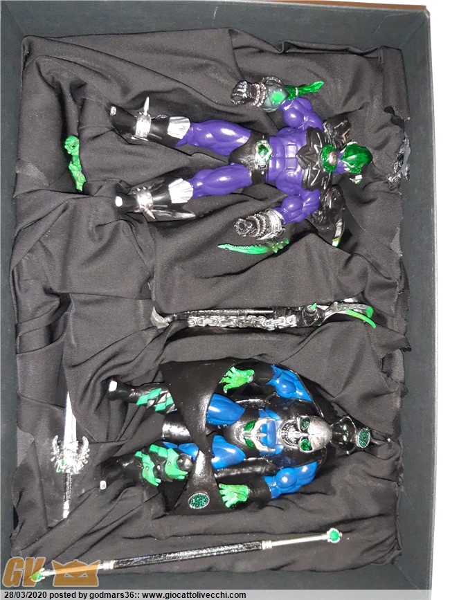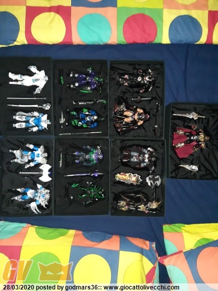 Le scatole sono così organizzate: Generale e Mago da una parte e Guerriero e Demone dall`altra. L`imperatore è da solo. Un totale di 13 action figures. Ecco una visione di inseme a scatole aperte