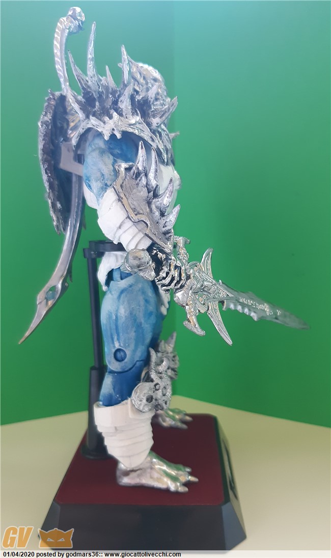 Ma vediamo alle soluzioni utilizzate. La base sono corpi motuc ovviamente. Tutto il resto viene da universi diversi. Ci sono parti dalle action figures S.I.C. Bandai, marvel, Spawn ed altre. Le armi sono quasi tutte in metallo. Alcune sono dei S.I.C. altre sono dei ciondoli o portachiavi fantasy che si trovano in commercio. Altre invenzioni sono rappresentate dall`utilizzo di braccialetti rovinati, orecchini inutilizzati, collane etcc. Ovviamente sono colorati a mano con colori citadel con Finish valleyo opaco. Le parti cromate sono dati da appositi pennarelli per cromature presi su ebay. Scusate per le foto ma meglio di così non vengono.