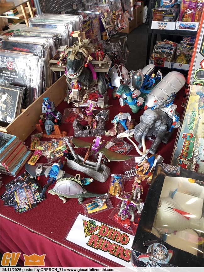 Ciao ORION , il bello delle fiere, e di questa in particolare, è che non sai mai quello che puoi trovare. A volte ci sono gli espositori di sempre , mentre a volte ci sono di nuovi e dalle parti più disparate d`Italia. Personalmente di Dino Riders ne ho visti e anche di Cavalieri dello Zodiaco. Dipende comunque da quali sono le tue esigenze ...se loose, in scatola etc etc Ti posto una foto di un Novegro del 2022 con i Dino Riders.
