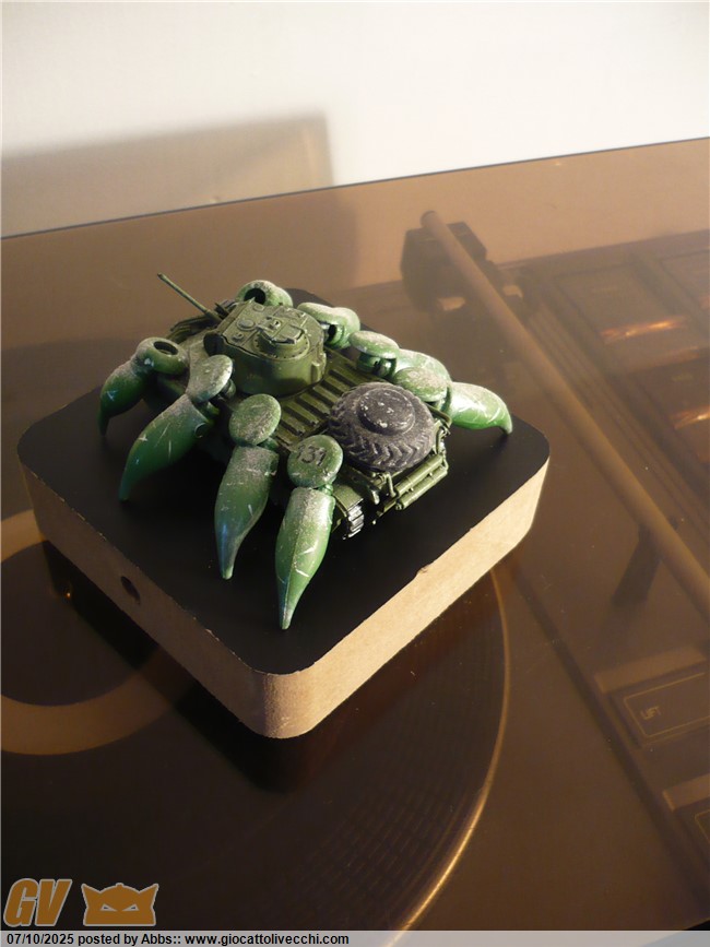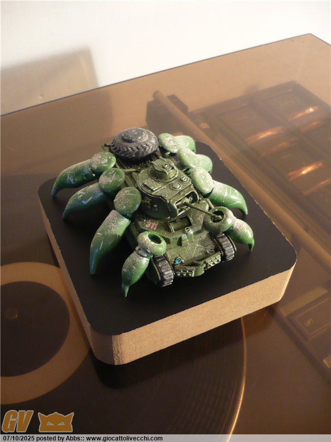una delle customizzazioni che mi ha divertito di più è stata l`aggiunta della tanichetta di benzina intrisa d`olio sulla schiena, che potete vedere qui sotto, e i cingoli per un`ipotetica trasformazione in tank