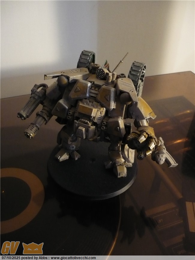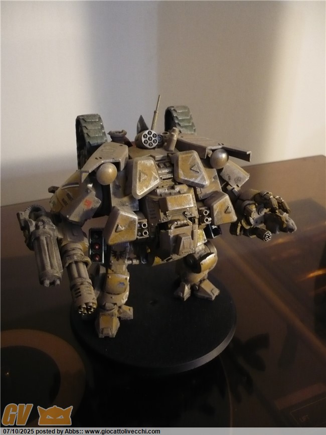 una Dreadnought ( che vi ricordo non è un mech ma un`armatura meccanica ) super potenziata da me e con un design molto potente. dipinta tutta a pennello, con l`aggiunta della sabbia.