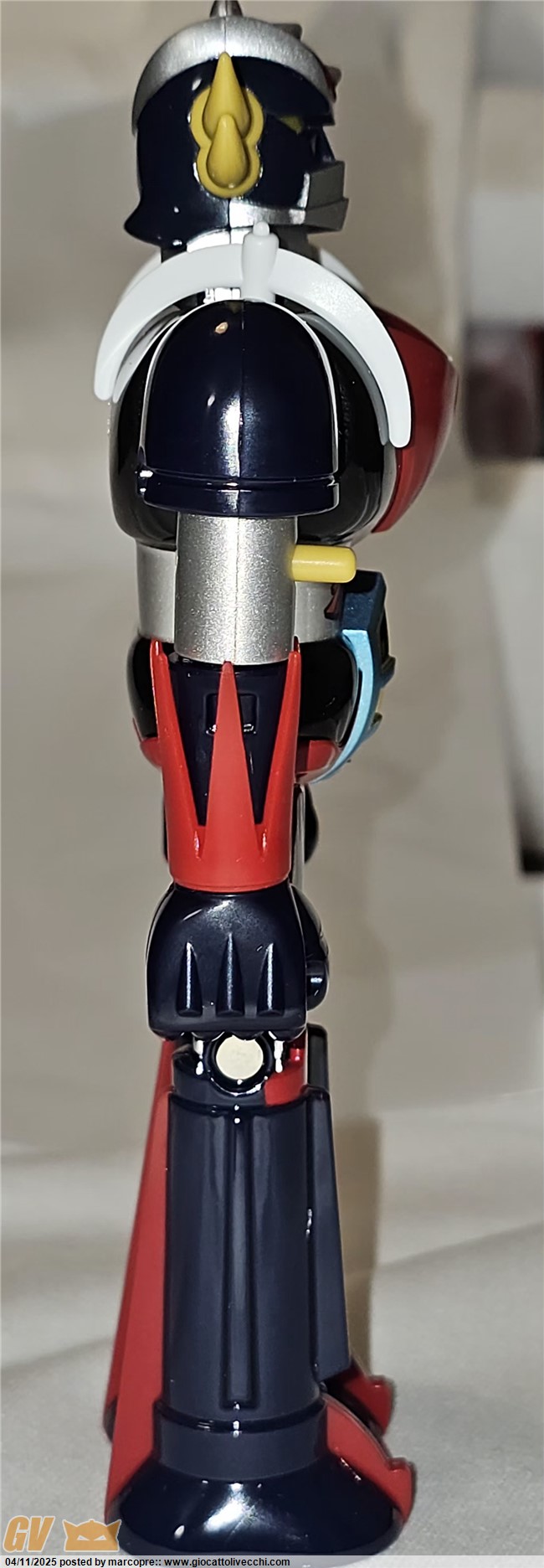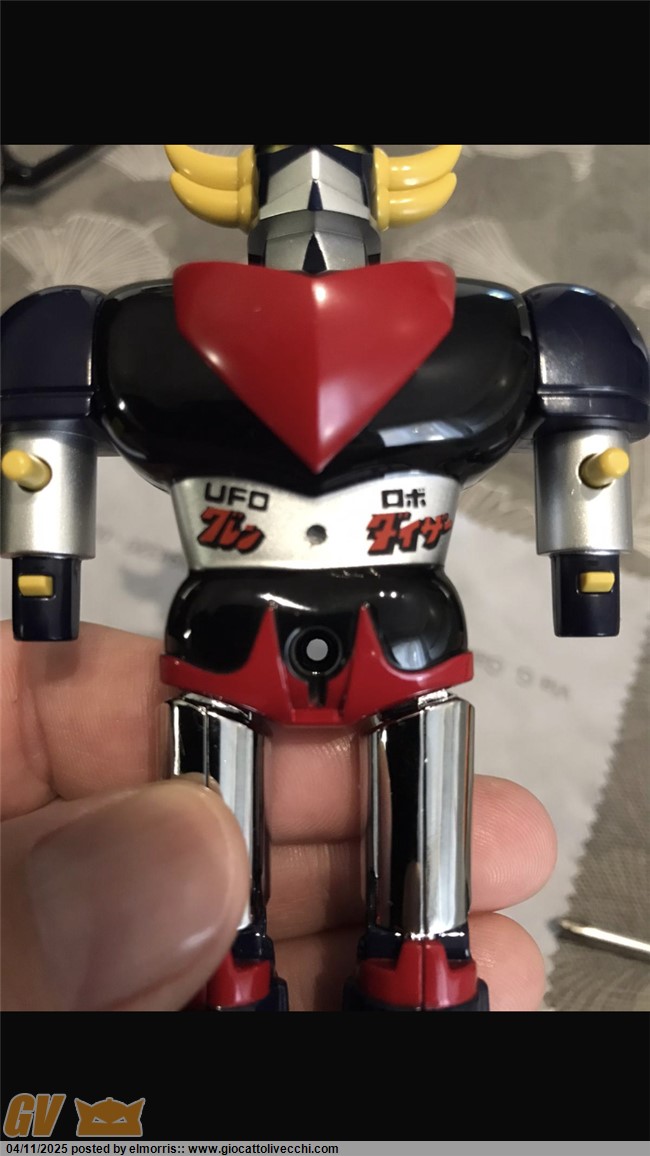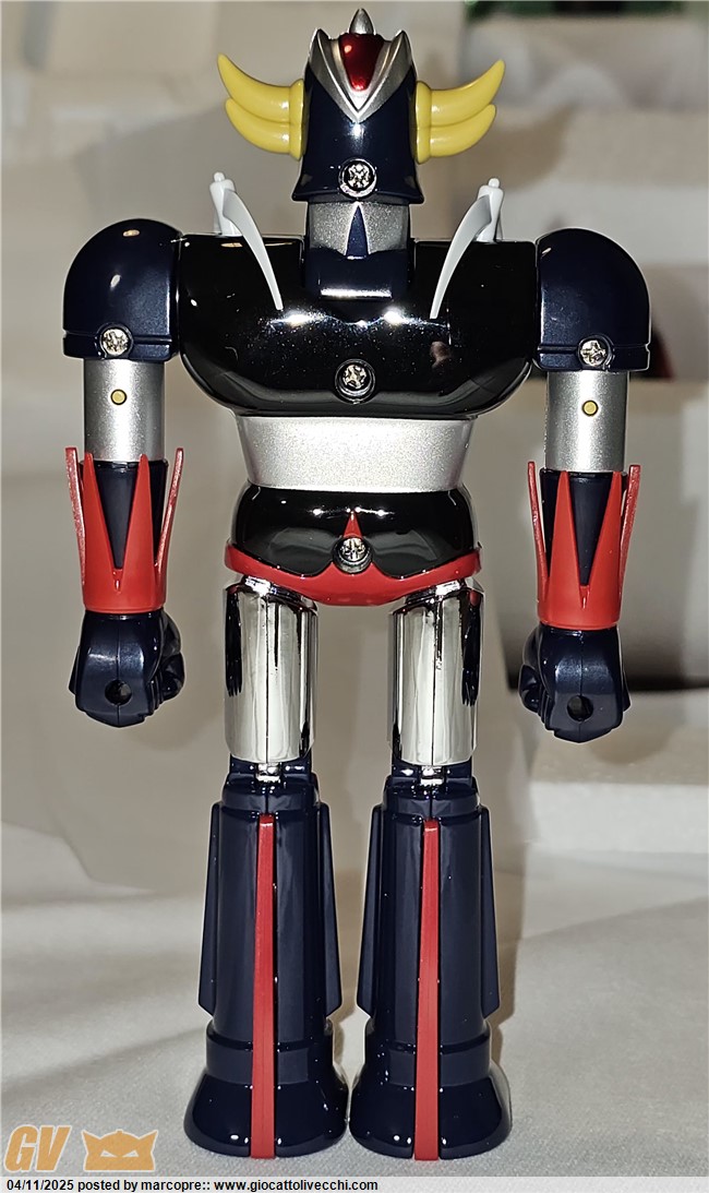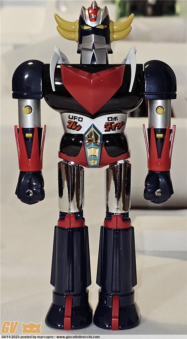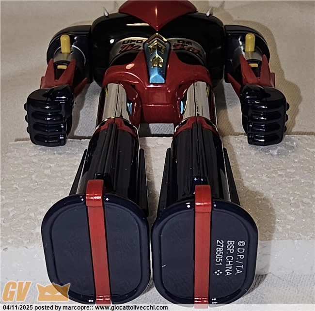 Volevo aggiungere che questo nuovo goldrake è stato realizzato perfezionando l’ultima versione japan. La considero una quinta versione. I dettagli e le rifiniture sono di un livello eccelso, superiore ai gx e compagnia bella, secondo me. Inoltre non c’è nessuna parte, anche minima, che possa essere scambiata con i modelli vintage.