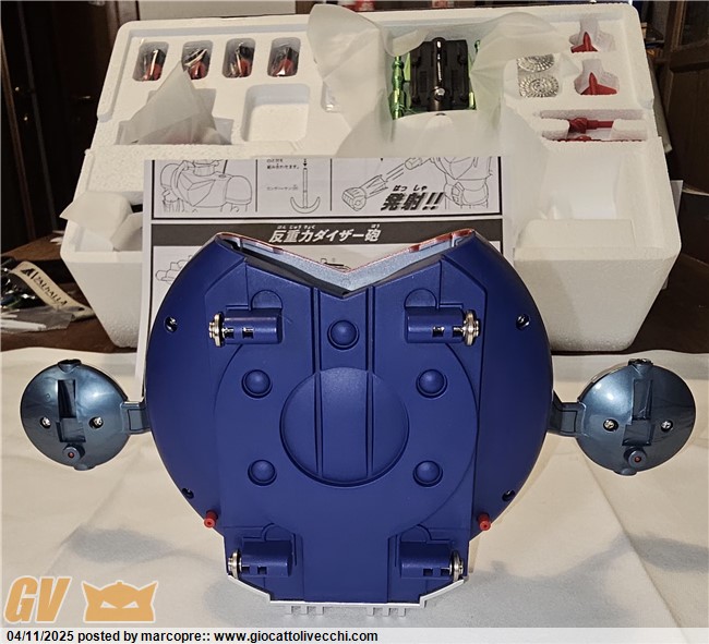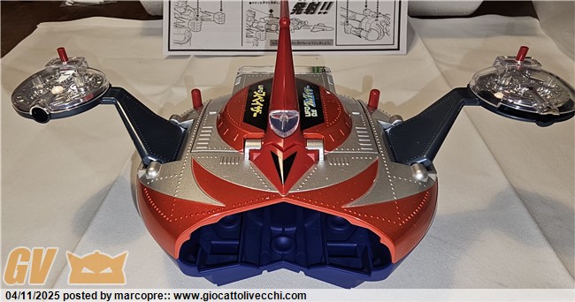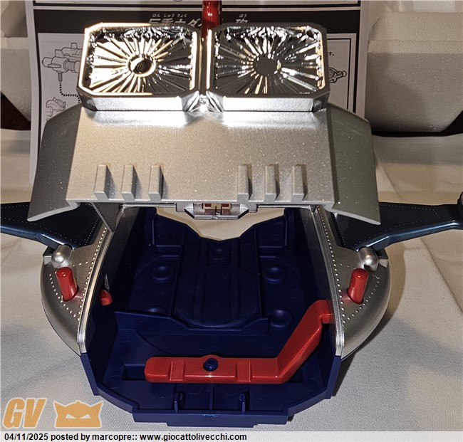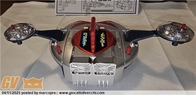 Io l’ho preso un paio di settimane fa in fiera a Verona. Devo dire che è veramente stupendo! Non riesco a trovargli un difetto. Il robot è una versione migliorata in tutto rispetto al vintage. Livello delle finiture altissimo! È diverso dal prototipo che girava mesi fa. Le braccia sono in plastica e anche il petto rosso è un innesto in plastica. Lo hanno fatto per risolvere il problema delle vernici che si graffiavano. Il disco è davvero identico al vintage tranne per le ruotine, i loghi e qualche microdettaglio ma è davvero scintillante! Siccome ne ho altri in arrivo, questo l’ho aperto. Metto qualche foto (se riesco..) che al momento non vedete in giro.