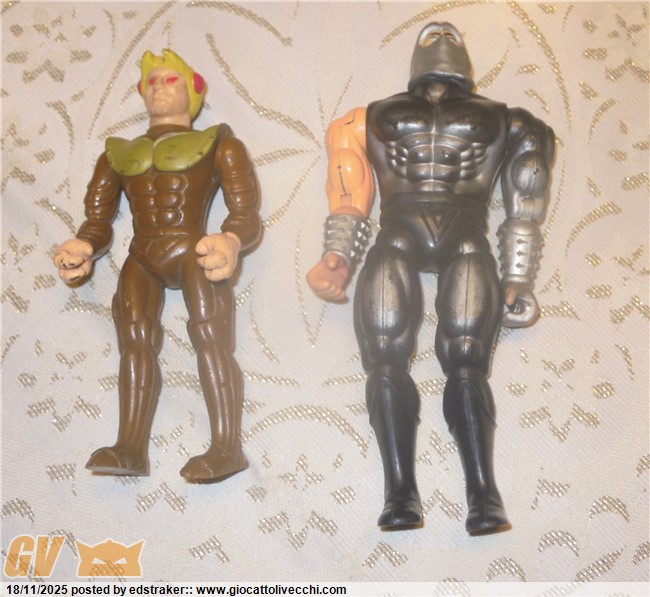 Salve a tutti. Ho trovato questi due personaggi. Potreste aiutarmi ad identificarli ed eventualmente valutarli? Quello nero è tutto snodato, quello marrone muove solo le braccia. Pensavo fosse un Sectaurus, ma non ne esistono di quel colore. Grazie in anticipo a chi mi aiutera`.