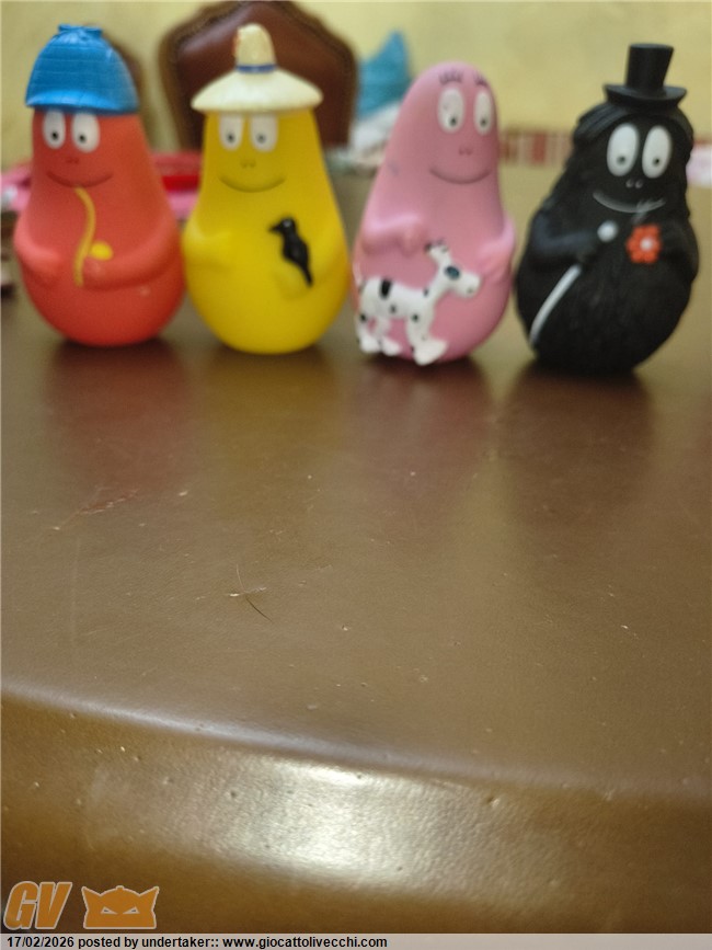 Ciao, chied valUtazione questa famiglia Barbapapa in plastica dura, li ho cercati in rete ma proprio ugUali non lo ho trovati, segnalo cHe hanno un marchio ma e` troppo piccolo e non riesco a leggerlo.