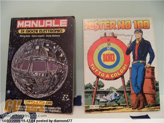 Chiedo info su 2 cose trovate di cui non conosco il valore (se ne hanno) e l`eventuale rarit?.. trattasi del Numero 100 a colori di MISTER NO del settembre 1983,e di un manuale di giochi elettronici a colori del 1984,con al`interno consolle dell`epoca,handgame portatili,foto di vari giochi a 8 bit,cabinati da bar ecc,veramente molto bello..appena la sciura mi passa la digitale metto foto.....grazie in anticipo!