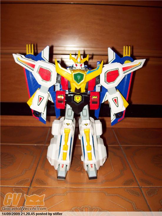 ed ecco un parente dei transformers componibili... il dancougar. bruttino nel vintage, eccelso come S.o.c., questo robottone si compone di un ligre (figlio di leone e tigre), mammouth, pantera e rapace. Ognuno di essi e`componente del robottone, robottino, veicolo tipo tank (tranne il falco) e bestia.