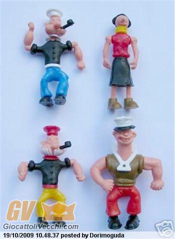 eh eh, io nei sacchetti (ancora non è confermato), trovai sicuramente 2 bruto, 2 olivia e finalmente un popeye. tutti componibili. bruto: 2 piedi, pezzo unico gambe, torace, 2 braccioni a 90 gradi, testa tuttacollo, capelli uniti alla barba a forma di corona... olivia: 2 piedi, 2 gambe a bastoncino, pezzo unico per gonna e torace, 2 braccine, faccia, casco di capelli... popeye: 2 piedi, pezzo unico gambe, torace, 2 braccia, testa senza pipa, cappellino... di più non so...