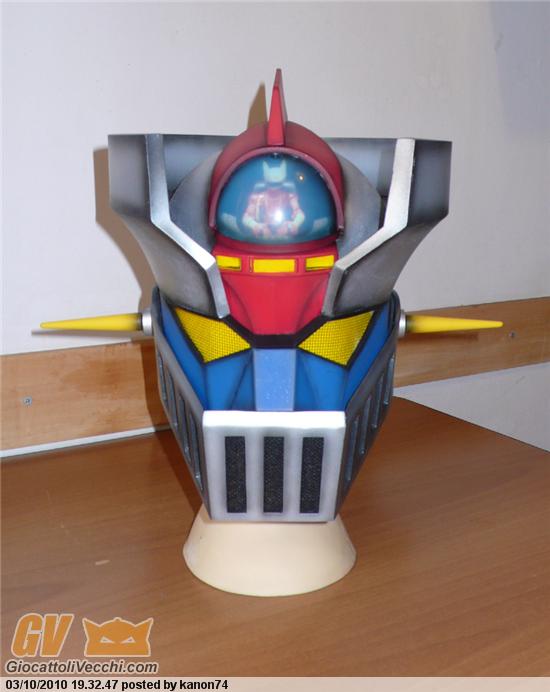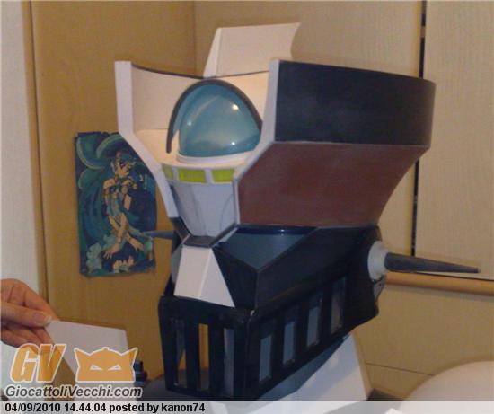 Ciao a tutti, sono qui per chiedervi un grande favore in amicizia. Come alcuni di voi sanno io oltre a collezionare vecchi giocattoli faccio cosplay. Per fine mese c`è la fiera di Roma e poi ci sarà Lucca comics dove porter? mazinger Z ovviamente su mia scala corporea. Siccome è un progetto abbastanza professionale vorrei completarlo con un piccolo tocco di classe ma ho bisogno di voi. Nell` Hover pilder e precisamente dove c`è il vetrino azzurro (nella foto sotto) vorrei metterci una stampa che ritrae Koji seduto ai comandi. Purtroppo per ovvie ragioni ergonomiche non c`è spazio di inserire realmente l`omino perchè in teoria dove risiede l`hover pilder un essere umano ha la scatola cranica eheh. Avrei bisogno di una semplice foto frontale (anche del giocattolo) dell`abitacolo del Pilder con il vetrino aperto in modo da applicare la stampa all`interno e far sembrare che ci sia realmente il pilota. Io non ho nessun Hover pilder ne ho trovato un` immagine adatta, proprio perchè la foto deve essere frontale. Non è che qualcuno di voi avrebbe un`immagine giusta o potrebbe fare una foto al proprio pilder (meglio bandai)? Devo unire il tutto perchè ora i pezzi sono tutti separati quindi se potete aiutarmi mi fareste un grande favore. Chieder? ai moderatori se posso lasciare la mia mail per un eventuale aiuto. Intanto grazie a tutti.