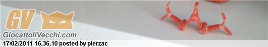Vi è mai capitato, dopo l’acquisto di qualche robot loose ed incompleto di ingegnarvi per riprodurre i pezzi mancanti x completarlo con l’utilizzo e lo smontaggio/taglio di altri oggetti/giocattoli nell’attesa di acquistare le parti originali? A volte il risultato pu? essere sorprendente…(certo non sarà mai come una repro ma è comunque un falso e la cosa risulta transitoria nell’attesa dell’acquisto del pezzo originale) Il robot cos? completato potr? fare la sua sporca figuraccia in vertina (basta solo non avvicinarsi troppo!!!). Un po’ di manualit? inventiva e tempo da perdere e il gioco è fatto. I miei “mostri” (allegher? le foto...rabbrividiamo!!!!) sono: - Delfighter Daltanious dx fatto intagliando una molletta rossa, - spalline Gakeen creato con batteria orologio colorata + parte in plastica di un taglierino - parastinco rosso Danguard dx ritagliando una costruzione di mio figlio creato assemblando i pezzi - gamba Antares (parte rossa) creata intagliando un vecchio timbro in resina poi colorato...