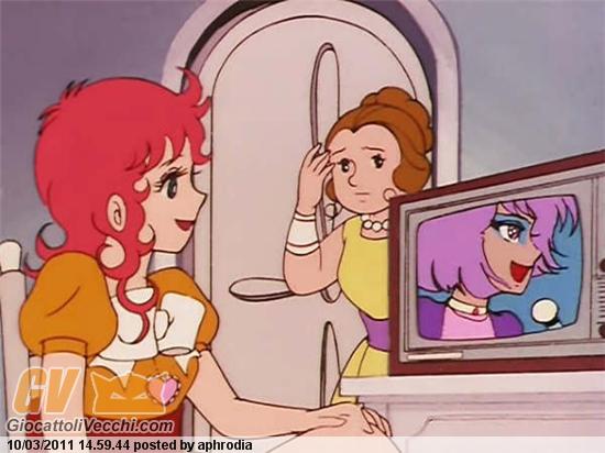 In Bia, la sfida della magia, la ragazza guarda Cutey Honey alla TV.