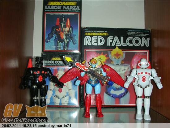 Ciao!!!! Ancora grazie x tutti i messaggi di benvenuto.....ah il coniglio in questione naturalmente si chiama Martino....! Si Baron sto iniziando dai micronauti sono quelli che da bambino ricordo più volentieri...credo che per le mani mi siano passati tutti perchè ce li scambiavamo..io in realt? avevo solo force commander con oberon e red falcon.I primi sono spariti mi è rimasta solo una trivella il secondo mi è rimasto ma con qualche mancanza...se da piccoli magari giravano un pò le scatole per quella testa non da jeeg ora trovo che siano veramente stupendi!!!!Indistruttibili!! La famiglia è destinata ad allargarsi.......