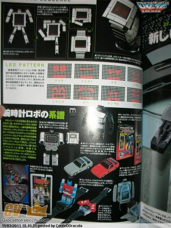 Continuo con questa pagina dove appaiono sia i crono-vari ereditati nella G2 (purtroppo non ho una scansione migliore) sia quello che poi sarebbe dovuto uscire ad opera di TakaraTomy/Hasbro... una bellissima riedizione del crono robot. Un signor orologio "serio", trasformabile. Mi sembra che poi fu messo in vendita? boh. Girero`la domanda al forum news.