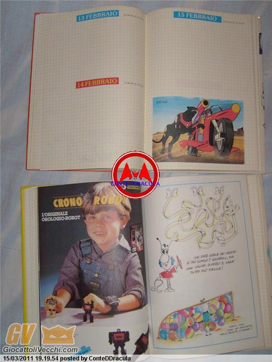 C`e`poi questa pubblicita`, mai apparsa in topolini ecc. L`ho trovata in un diario di "uffi" (noto personaggio di una trasmissione-contenitore di cartoni del sud-italia). Discorso chiuso? no... mi aspetto che si partecipi ancora! Ricordo ad esempio di aver visto un orologio che diventa... vespa! qui nel mercatino un paio di anni fa! ricordo anche dei set di "VS" che postai in un qualche thread di tarocchi... uno di quesi set erano due orologini in una confezione sola! su che ce n`e`da parlarne! ...