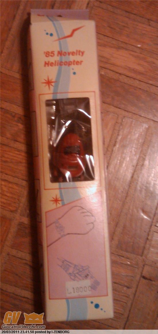 A dire il vero esiste anche un elicotterino... scatola simile, ma il soggetto e`un elicotterino con elica tonda, con 3 pale o 4 non ricordo, che non si trasforma. Semplicemente si stacca dal supporto/cinturino... basta. Ne trovai una scatola da decine di pezzi a 50cent l`uno e non la presi.