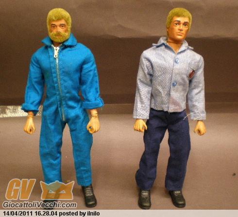 1975 hasbro, uno dei due ha gli occhi che si muovono da dietro la testa, contate che entrambi avevano le giunture di gomiti e spalle andati, e li ho sostituiti con un elastico telato molto resistente, senza per altro compromettere nessuna parte dell`oggetto facendo buchi o scollando o robe simili....Le mani erano sane stranamente...