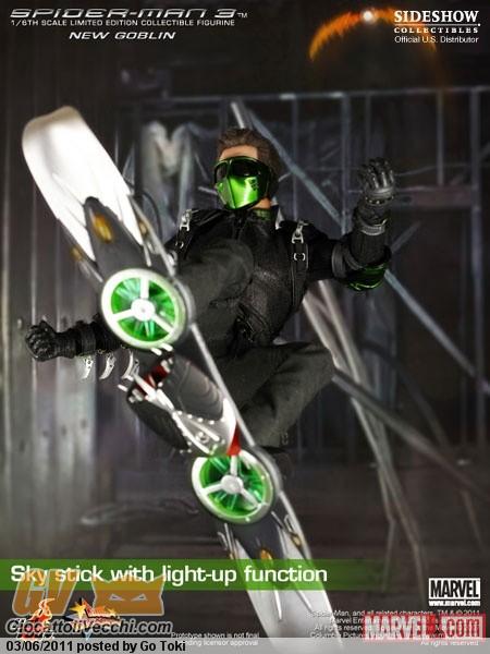 Hot Toys is proud to present the 1/6th scale New Goblin Limited Edition Collectible Figurine from the Spider-Man 3 movie. The movie-accurate New Goblin collectible is specially crafted based on the image of James Franco in the movie, highlighting the authentic head sculpt, highly detailed costume, weapons and accessories. The 1/6th scale New Goblin Limited Edition Collectible Figurine specially features: