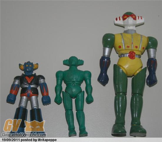 Prima Foto : Goldrake Fabianplastica 10 euro - Jeeg plastica dura verde era allegato al giornalino IL CORRIERE DEI PICCOLI direi sui 40 / 50 euro - Jeeg Colorato della New Gioco 60/70 euro