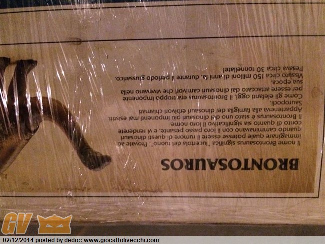 Ho tempestivamente aggiornato i miei annunci. Fantastiche le foto dei 2 Brontosauri. ...mi è capitato di trovarne alcuni in giro per il web ma non mi sono mai sbilanciato in offerte poiché non ricordando di cosa fosse composto l`imballo interno e non avendo facili riscontri, non avevo la certezza che fossero completi. Splinter, se il tuo Bronto è disponibile per una sfilata, mi farebbe piacere vedere come è collocato all`interno del box...se non chiedo troppo. Grazie per la disponibilità.