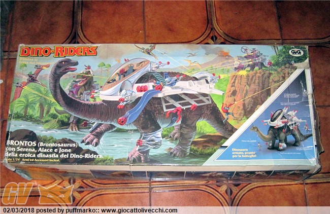 ciao a ragazzi i di dino riders ne ho qualcuno, li avevo da bambino e poi sono stati buttati ma una volta cresciuto li ho ricomprati a prezzi decisamente bassi rispetto ad ora.... Se riesco metterò delle foto ma quelli in mio possesso sono:il t-rex, lo stegosauro, il torosauro, il monoclonius, il diplodoco, il triceratopo ed il mammuth ma quest`ultimo vorrei venderlo....... sono tutti in scatola e senza parti mancanti Ne approfitto per chiedere se qualcuno ha il brontosauro in scala completo da vendere perchè mi piacerebbe averlo...ma con questi prezzi che corrono la vedo dura... ciao a tutti
